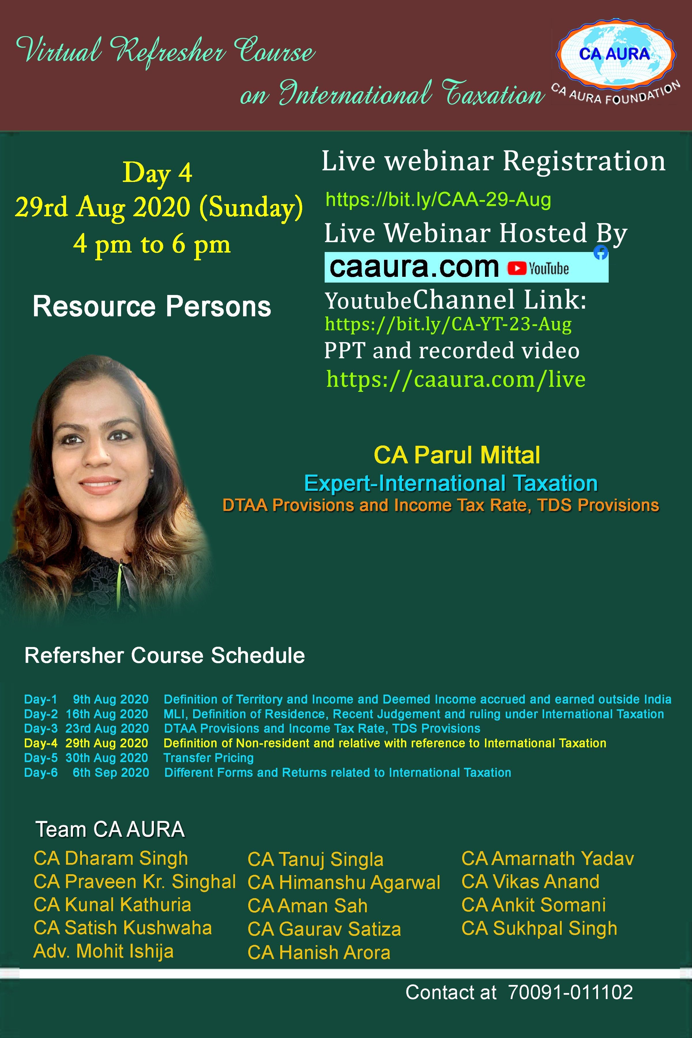 CA Aura Foundation Virtual Refresher Course on International Taxation